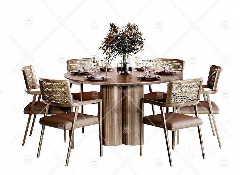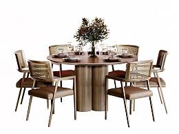 现代餐桌椅组合3D模型下载