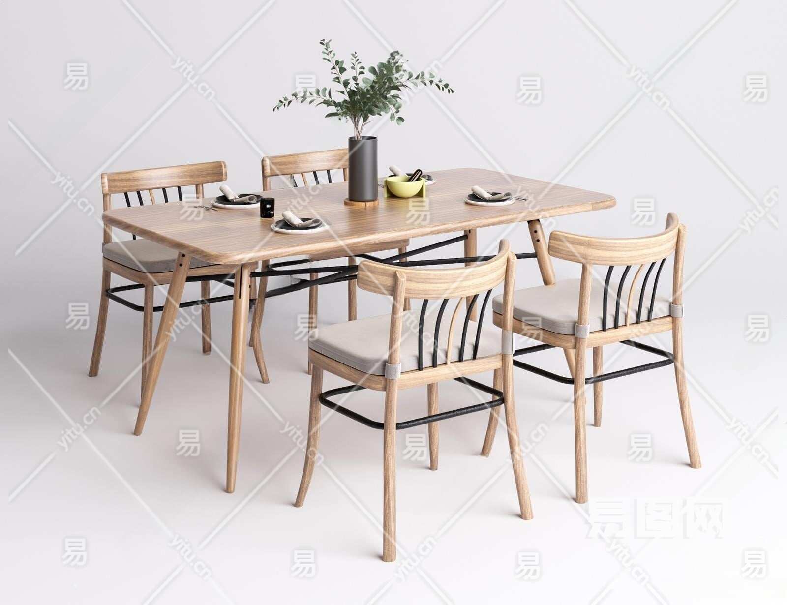 北欧餐桌椅3D模型下载