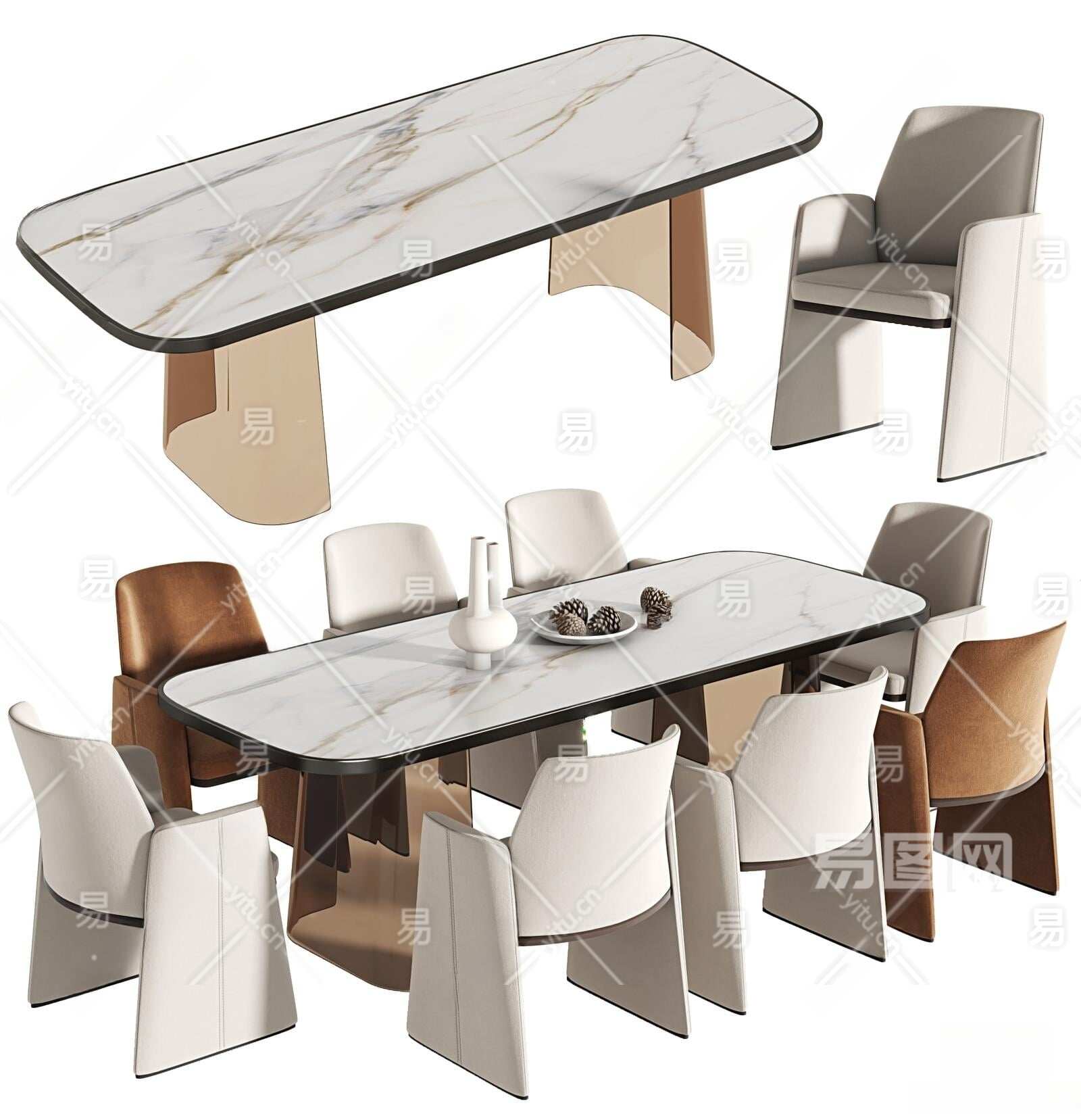 现代餐桌椅组合3D模型下载