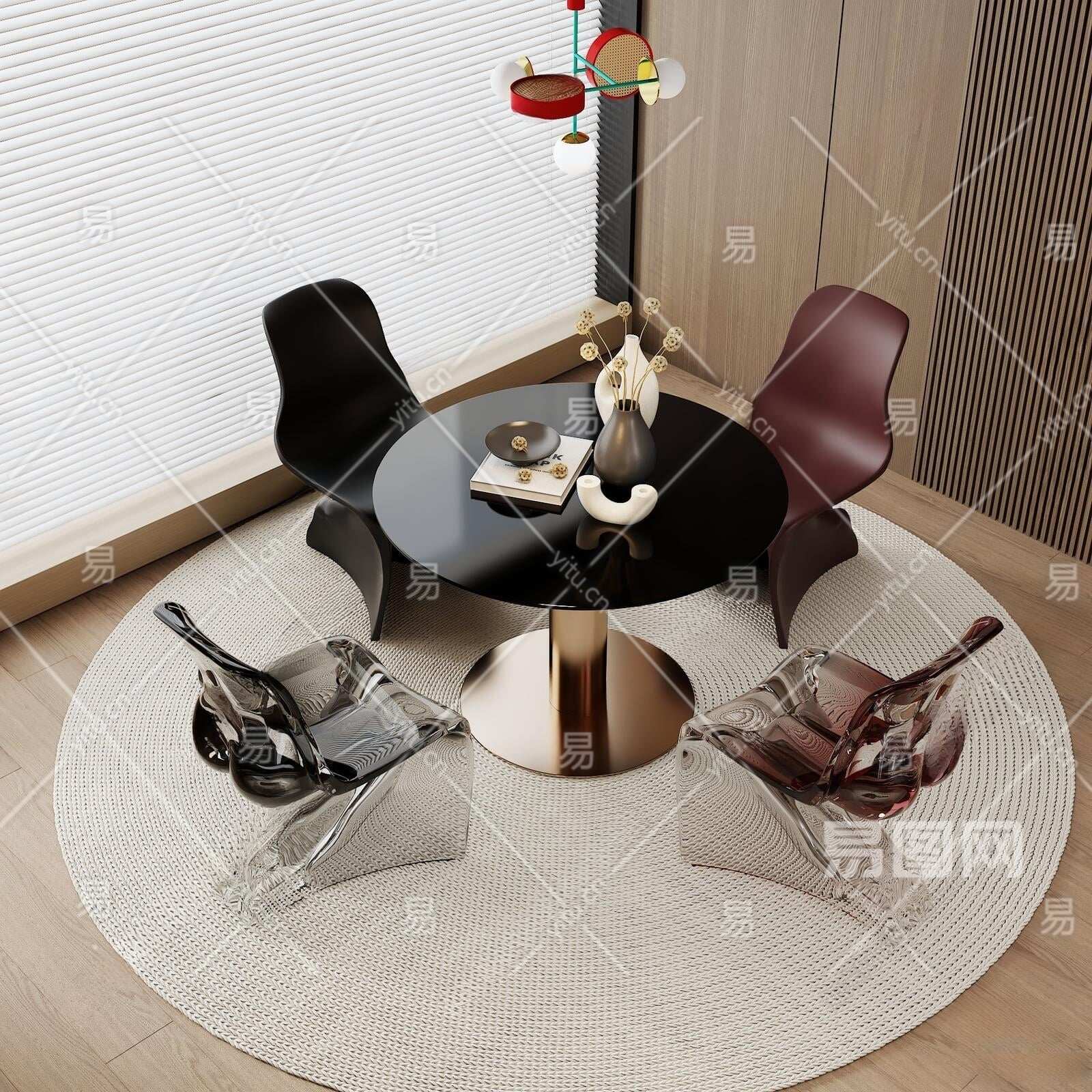 现代餐桌椅组合3D模型下载