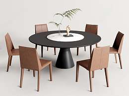 CASSINA现代圆形餐桌椅组合3D模型下载