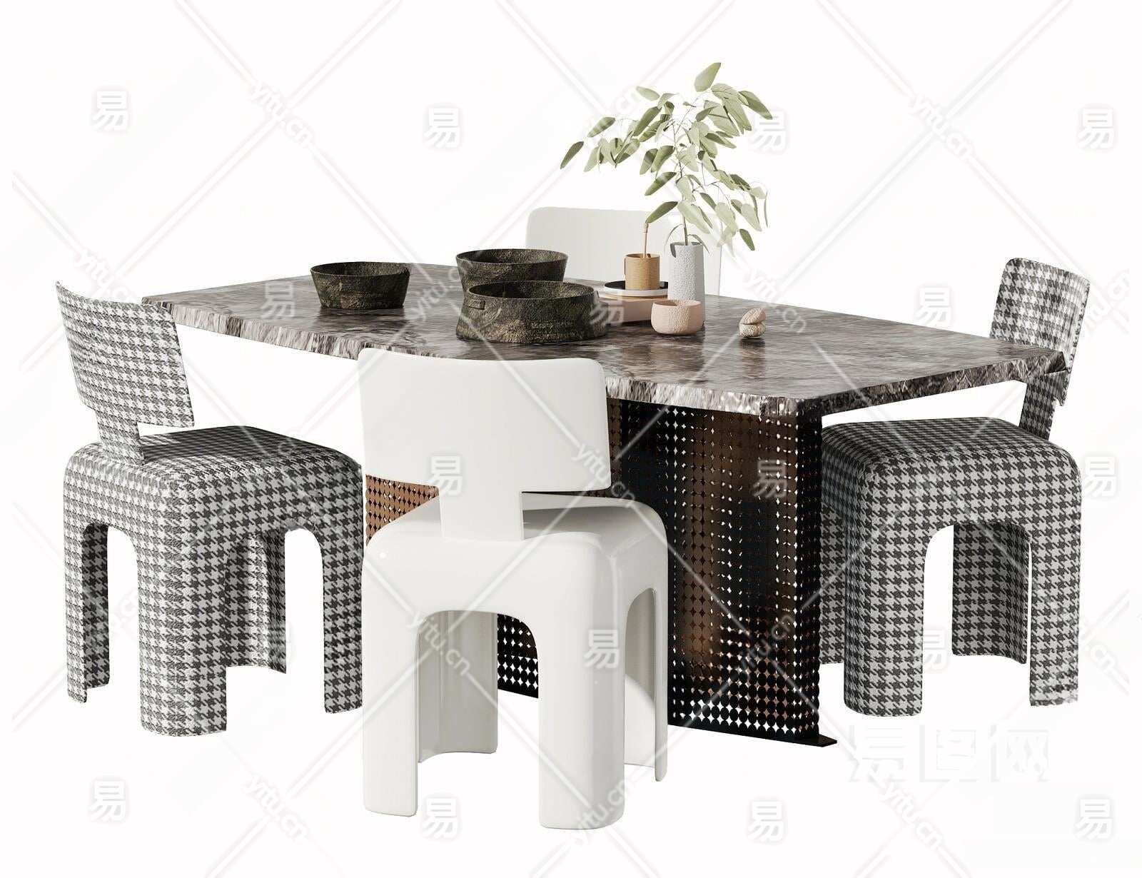 现代餐桌椅组合3D模型下载