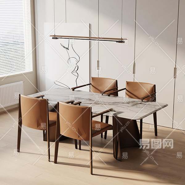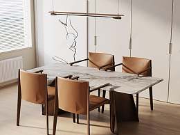 现代餐桌椅组合3D模型下载