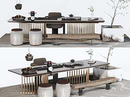 新中式茶桌椅组合3D模型下载