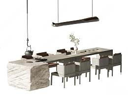 新中式茶桌椅组合3D模型下载