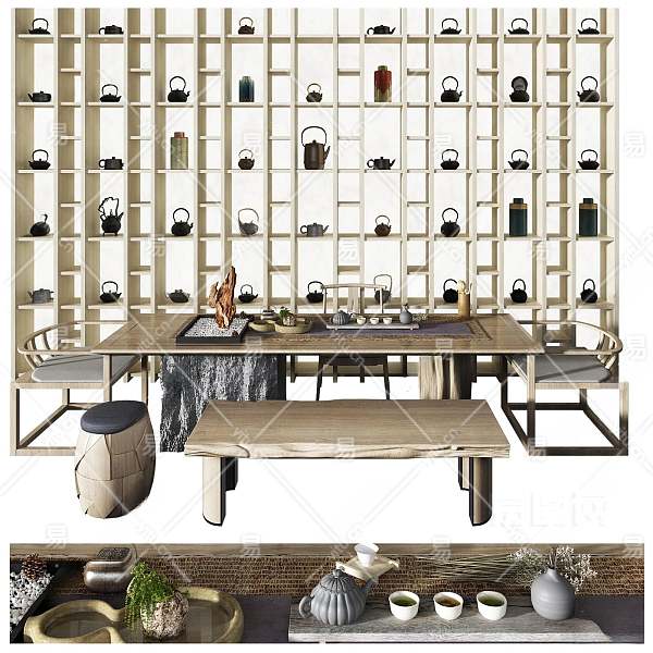 当前的位置:首页 > 3D模型 > 桌椅组合 > 茶桌椅组合 > 新中式茶椅茶桌3D模型下载