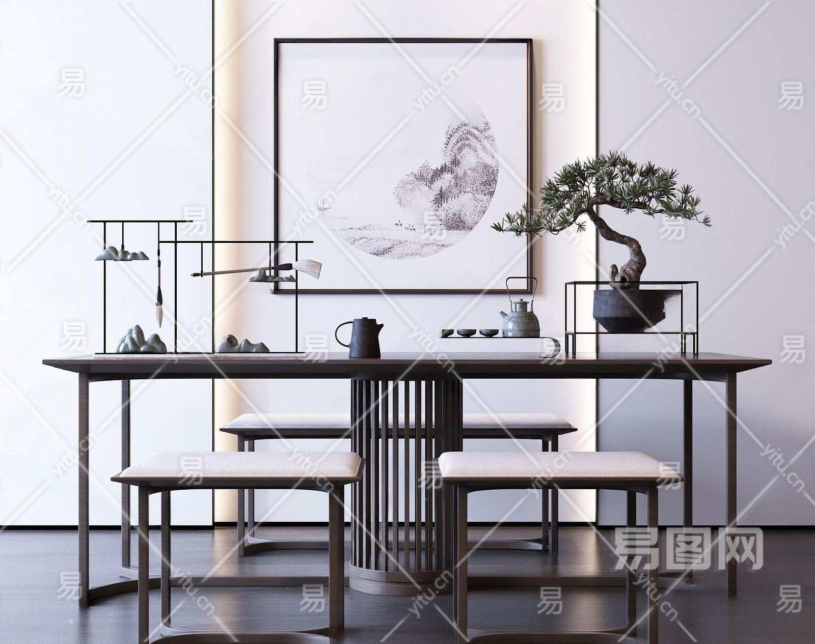 当前的位置:首页 > 3D模型 > 桌椅组合 > 茶桌椅组合 > 新中式茶桌椅植物摆件组合3D模型下载