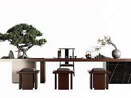 新中式茶桌椅组合3D模型下载