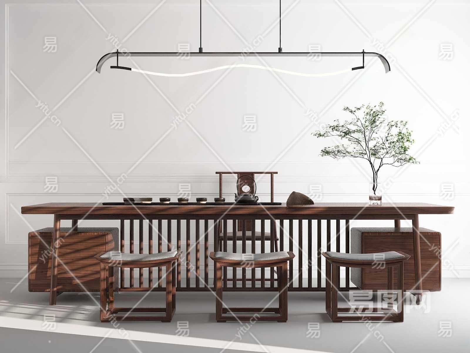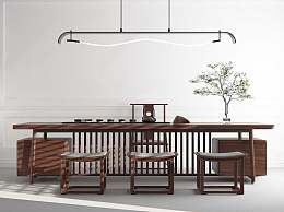 新中式茶桌椅组合3D模型下载