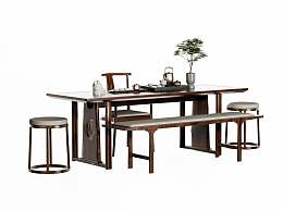 新中式茶桌椅组合3D模型下载