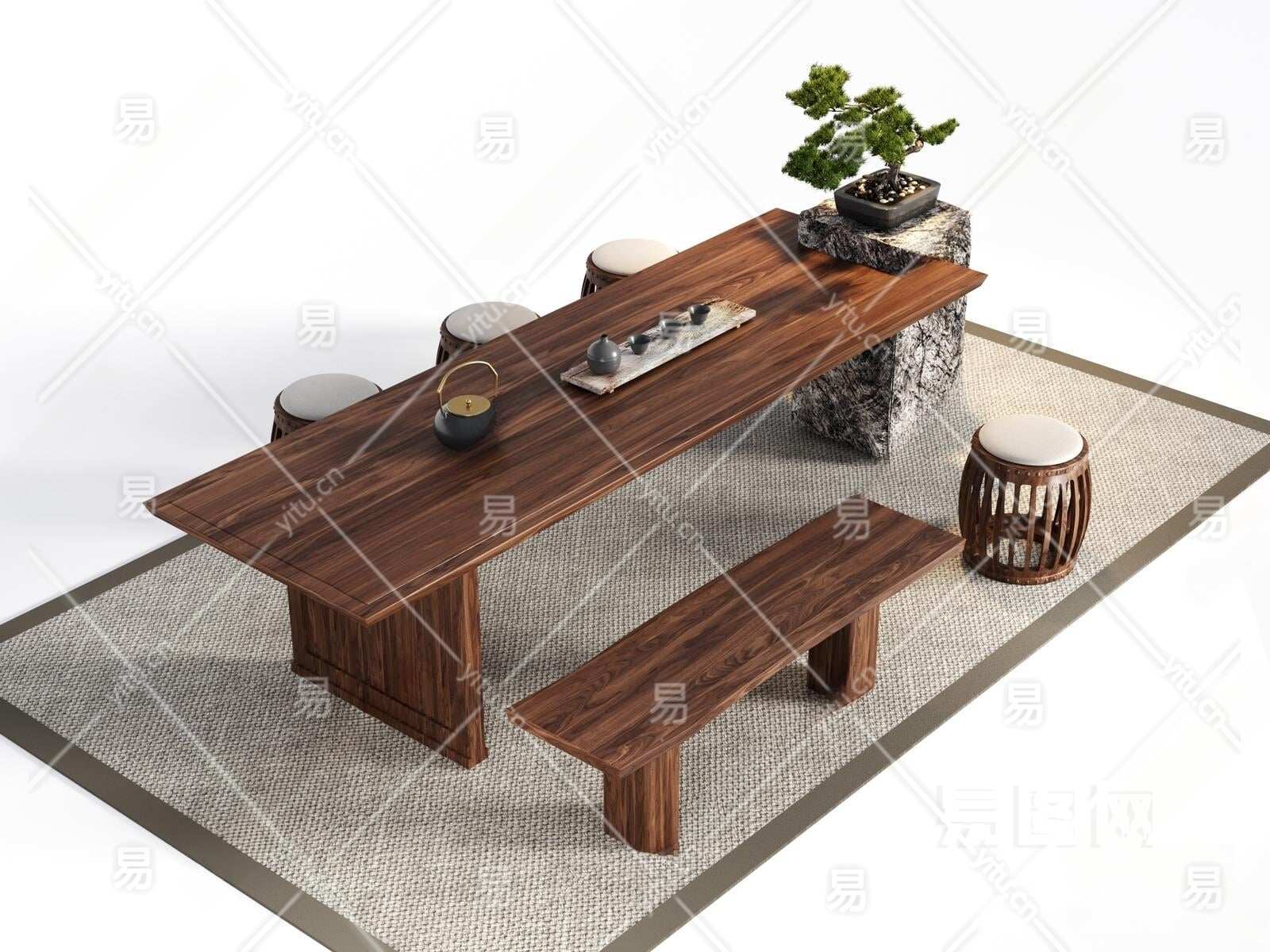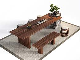 新中式茶桌椅组合3D模型下载