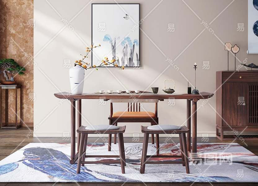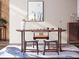 新中式茶桌椅组合3D模型下载