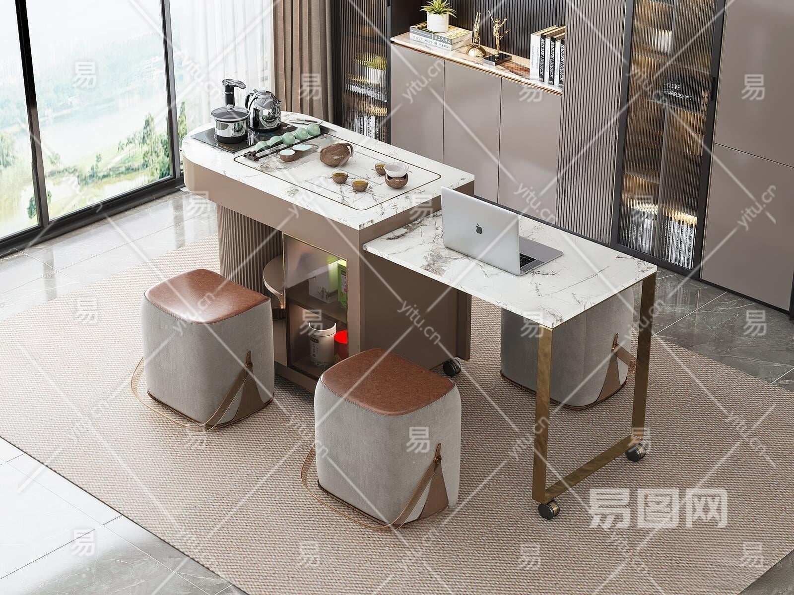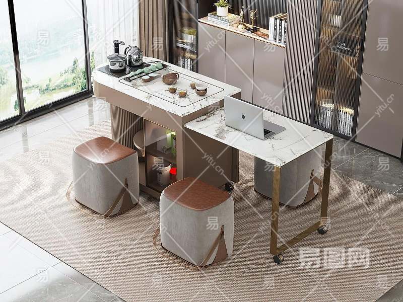 现代多功能茶桌椅3D模型下载