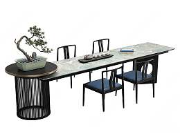 新中式茶桌椅组合3D模型下载