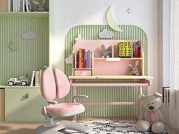 现代儿童学习桌椅3D模型下载