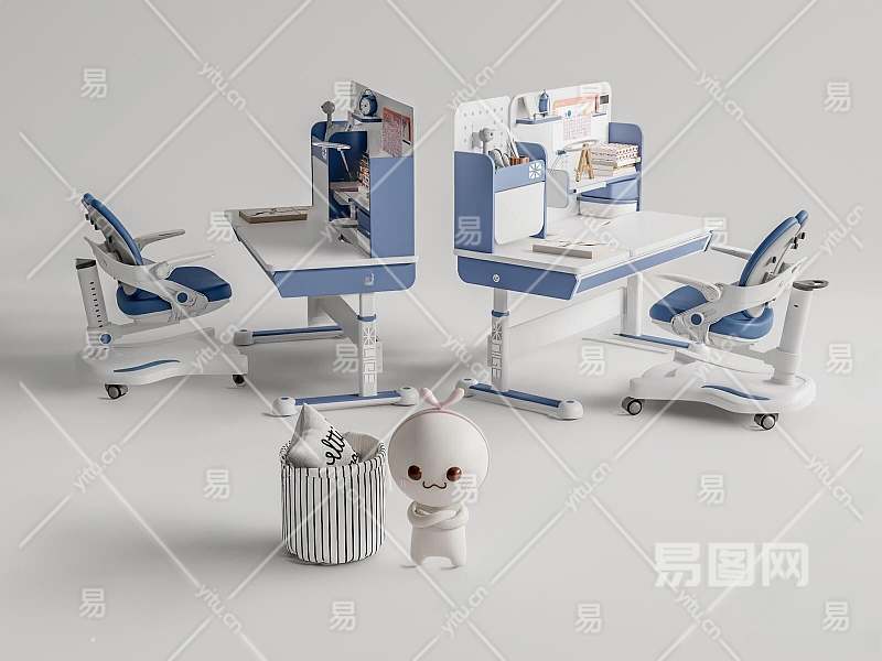 现代儿童学习桌椅组合3D模型下载