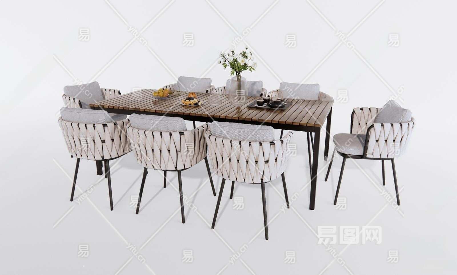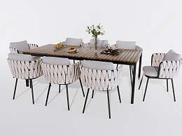 现代户外桌椅组合3D模型下载