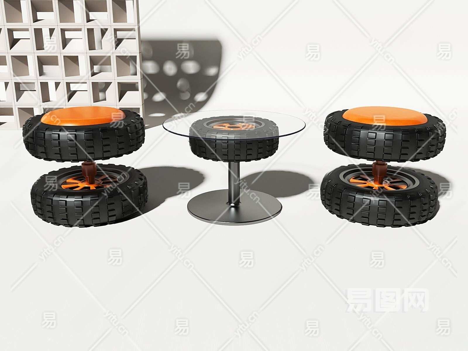 工业风户外桌椅组合3D模型下载