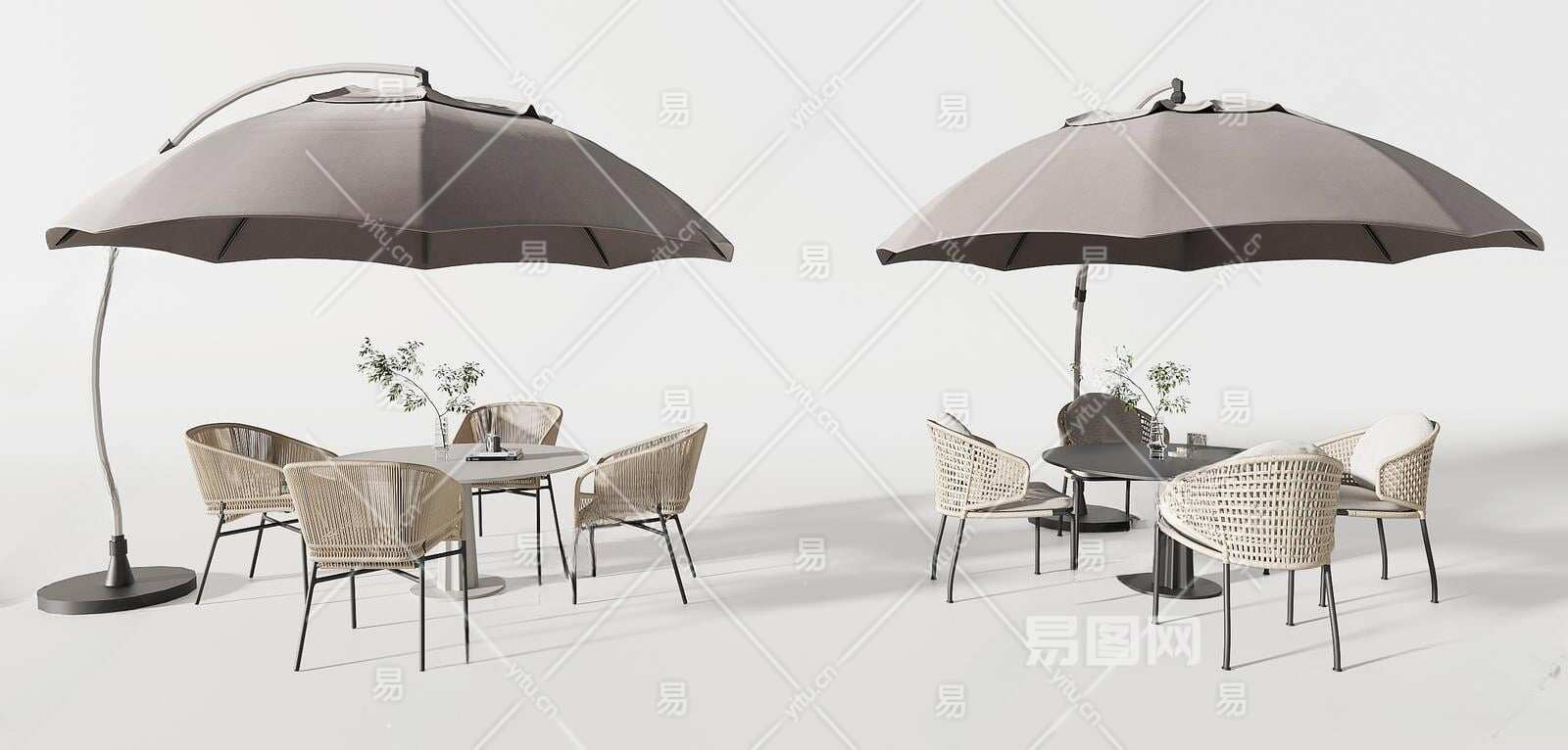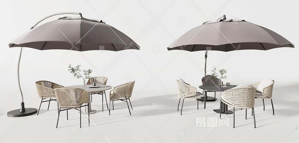现代户外桌椅组合3D模型下载
