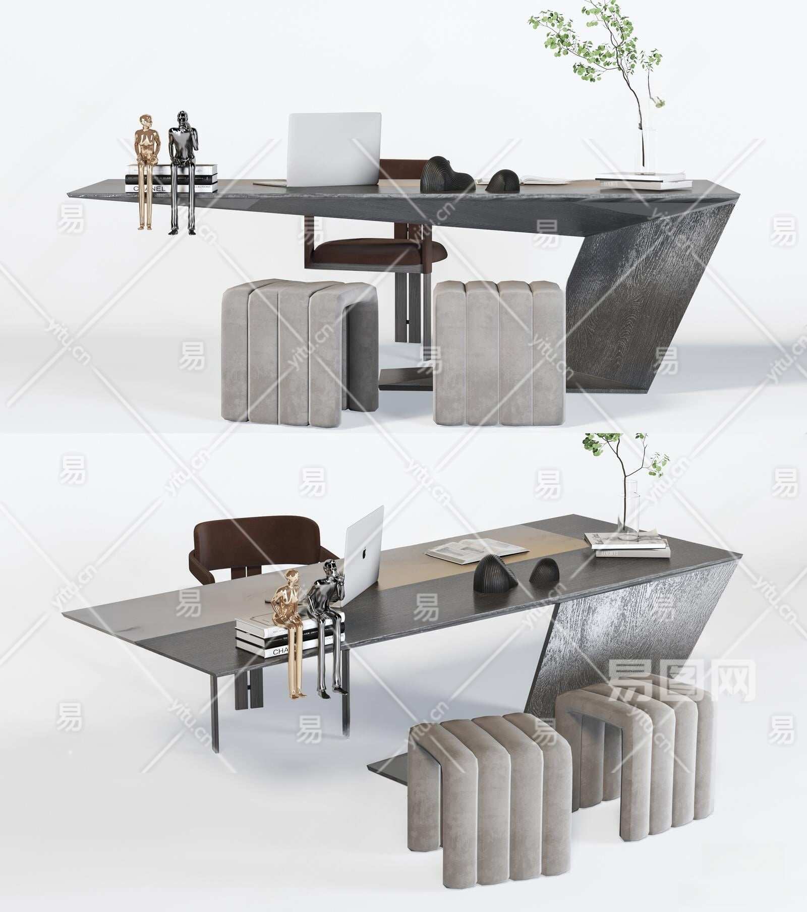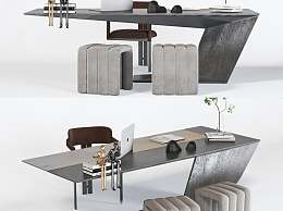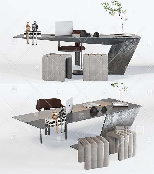 现代书桌椅组合3D模型下载