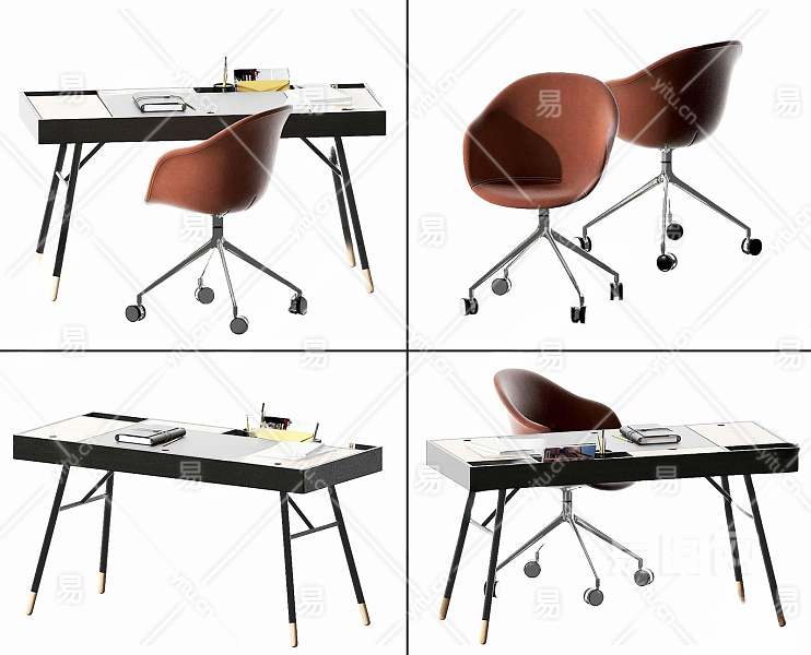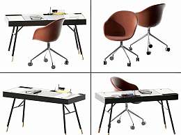 现代书桌椅组合3D模型下载