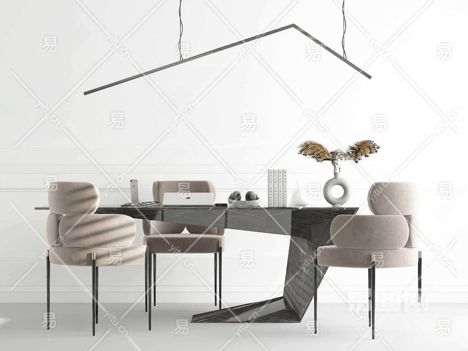现代书桌椅组合3D模型下载