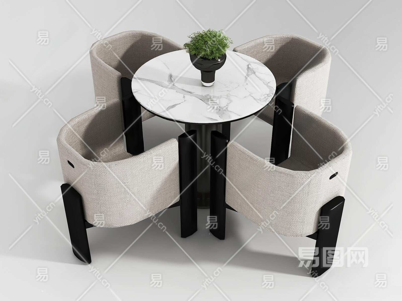 现代休闲桌椅组合3D模型下载