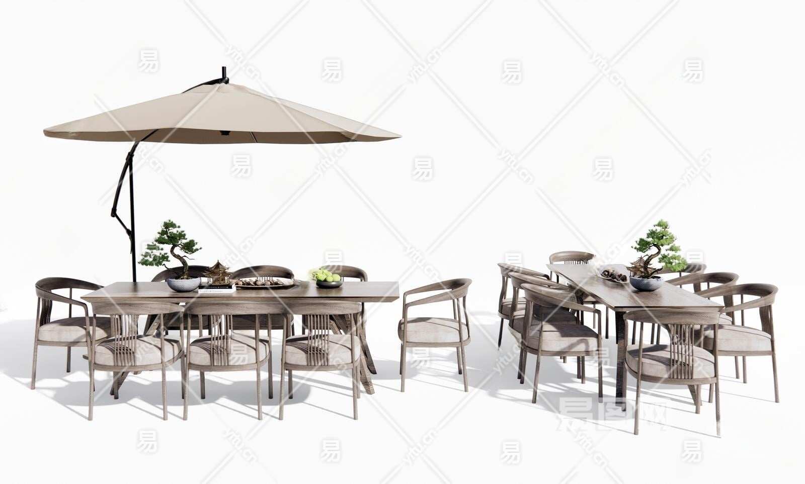 新中式户外休闲桌椅组合3D模型下载