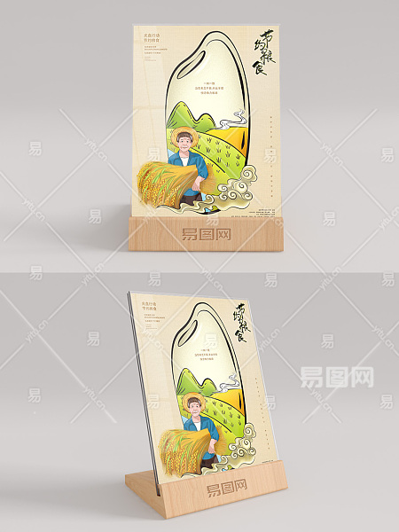 国风插画节约粮食桌卡台卡