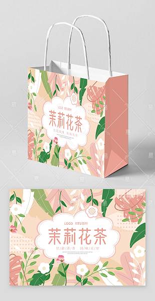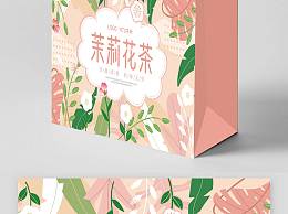 粉色简约大气卡通插画风茉莉花茶花茶包装茶叶包装花茶包装礼盒