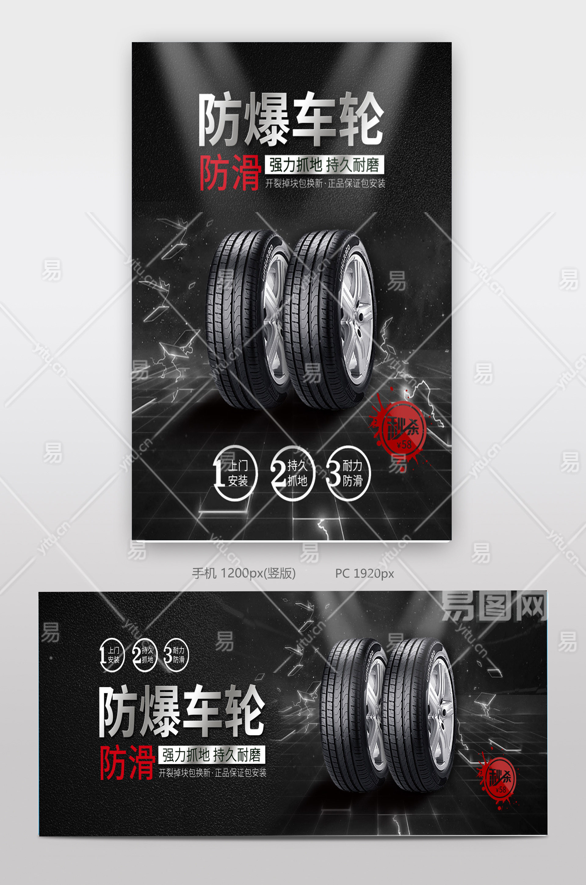 当前的位置:首页 > 广告设计 > 电商海报 > 汽车用品 > 黑色车轮汽车用品轮胎全屏电商海报