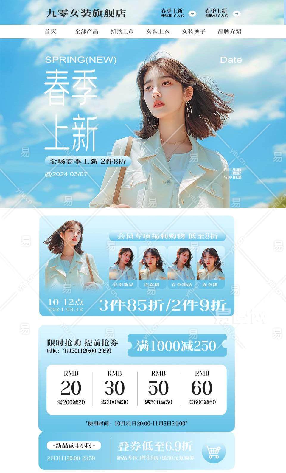 当前的位置:首页 > 广告设计 > 电商海报 > 服装配饰 > 简约大气春上新春季焕新春季新品女装