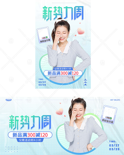 当前的位置:首页 > 广告设计 > 电商海报 > 服装配饰 > 天猫新势力周蓝绿渐变服装配饰女装活动