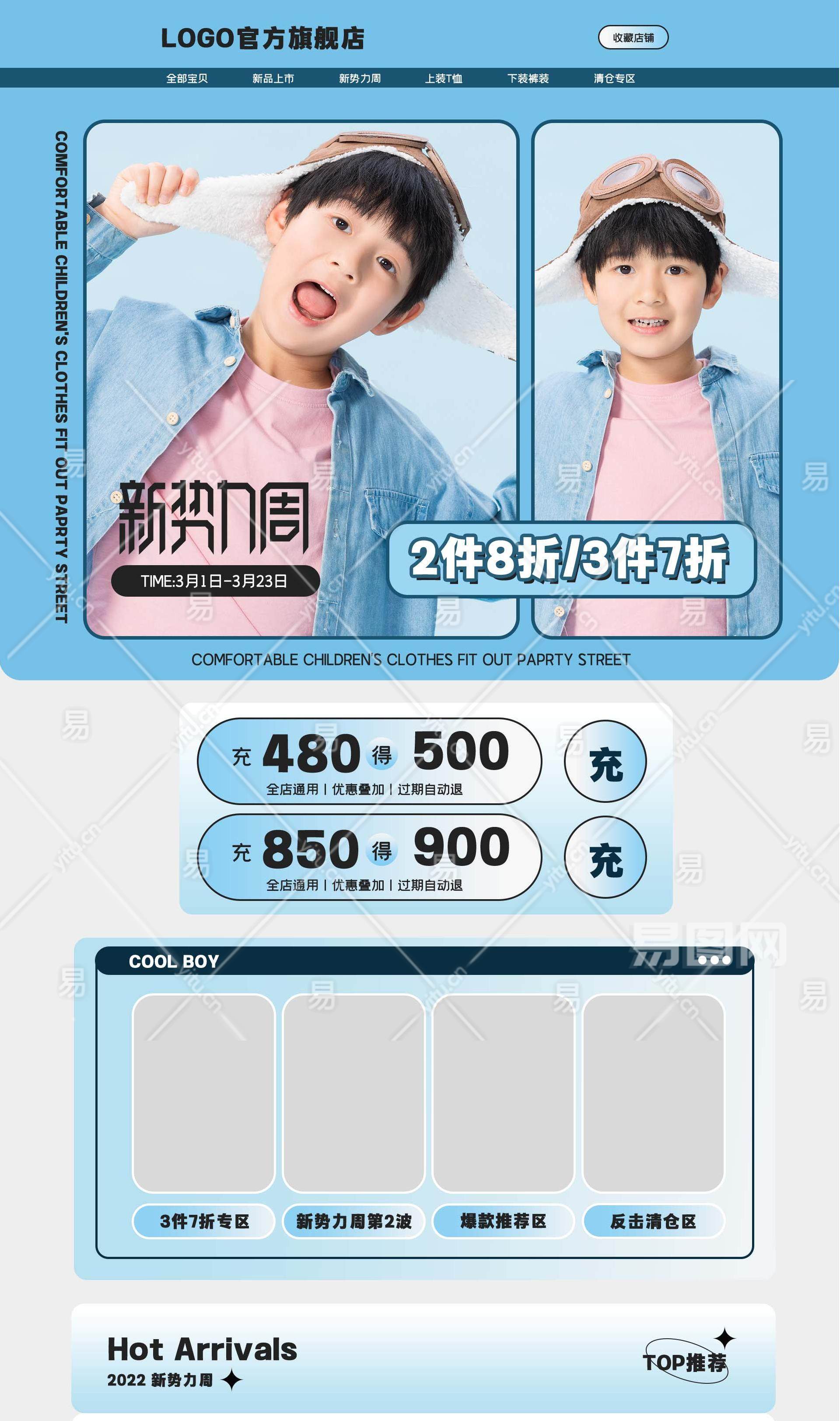 春季新势力周时尚潮流蓝色童装服装全屏首页