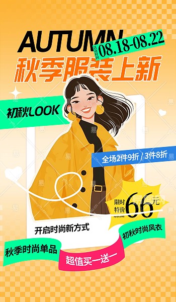 当前的位置:首页 > 广告设计 > 电商海报 > 服装配饰 > 秋季女装服装上新海报