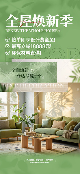 当前的位置:首页 > 广告设计 > 电商海报 > 家居用品 > 绿色小清新风房屋装修活动手机宣传海报