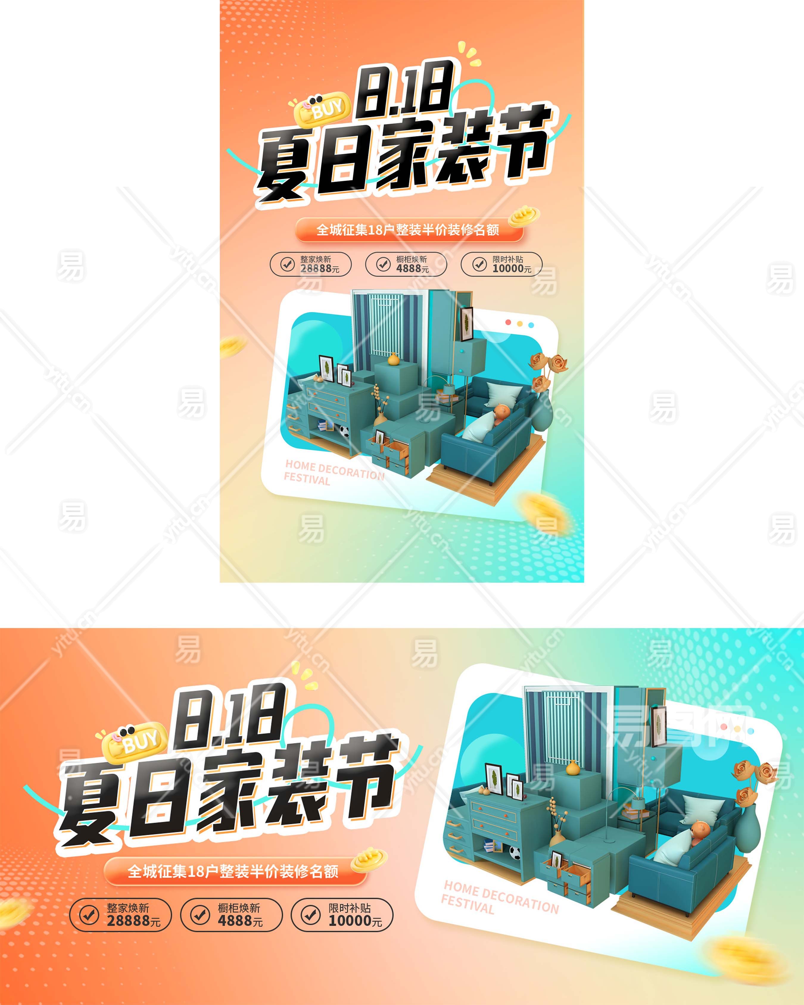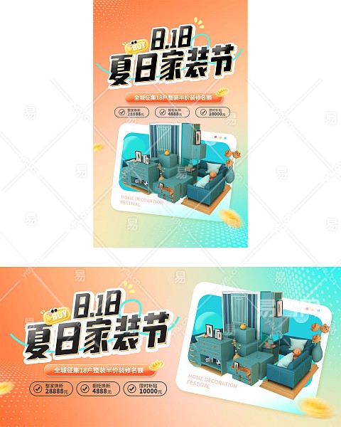 当前的位置:首页 > 广告设计 > 电商海报 > 家具建材 > 清新818家装节家居直通