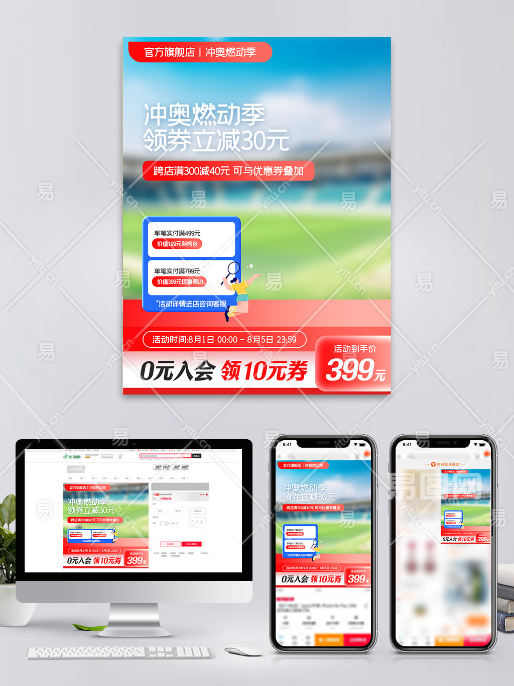 当前的位置:首页 > 广告设计 > 电商海报 > 户外运动 > 冲奥燃动季家电运动鞋服饰食品直通车