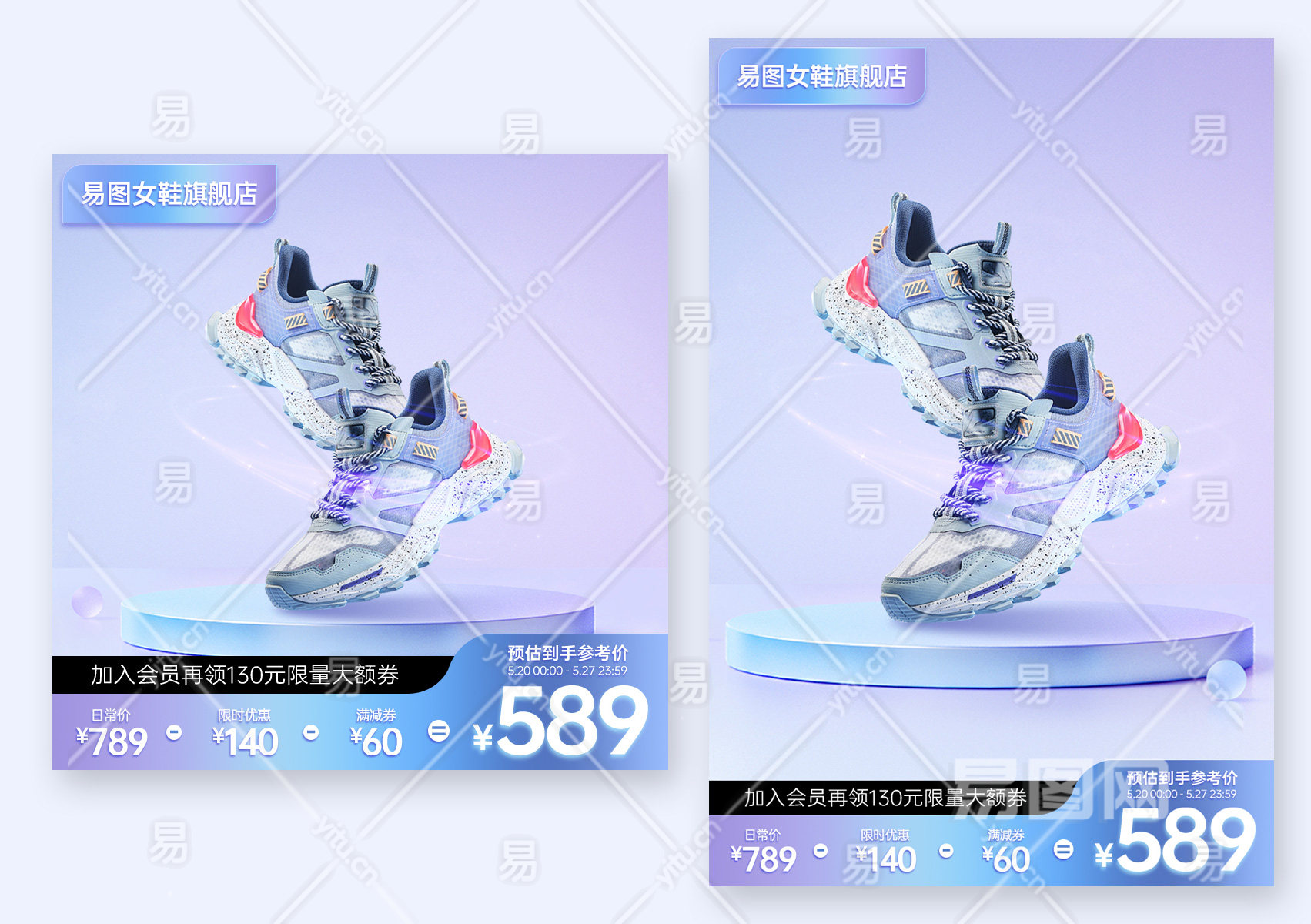 当前的位置:首页 > 广告设计 > 电商海报 > 户外运动 > 女鞋鞋子主图蓝紫色渐变炫彩清新C4D展台电商淘宝直通车鞋子主图直通车