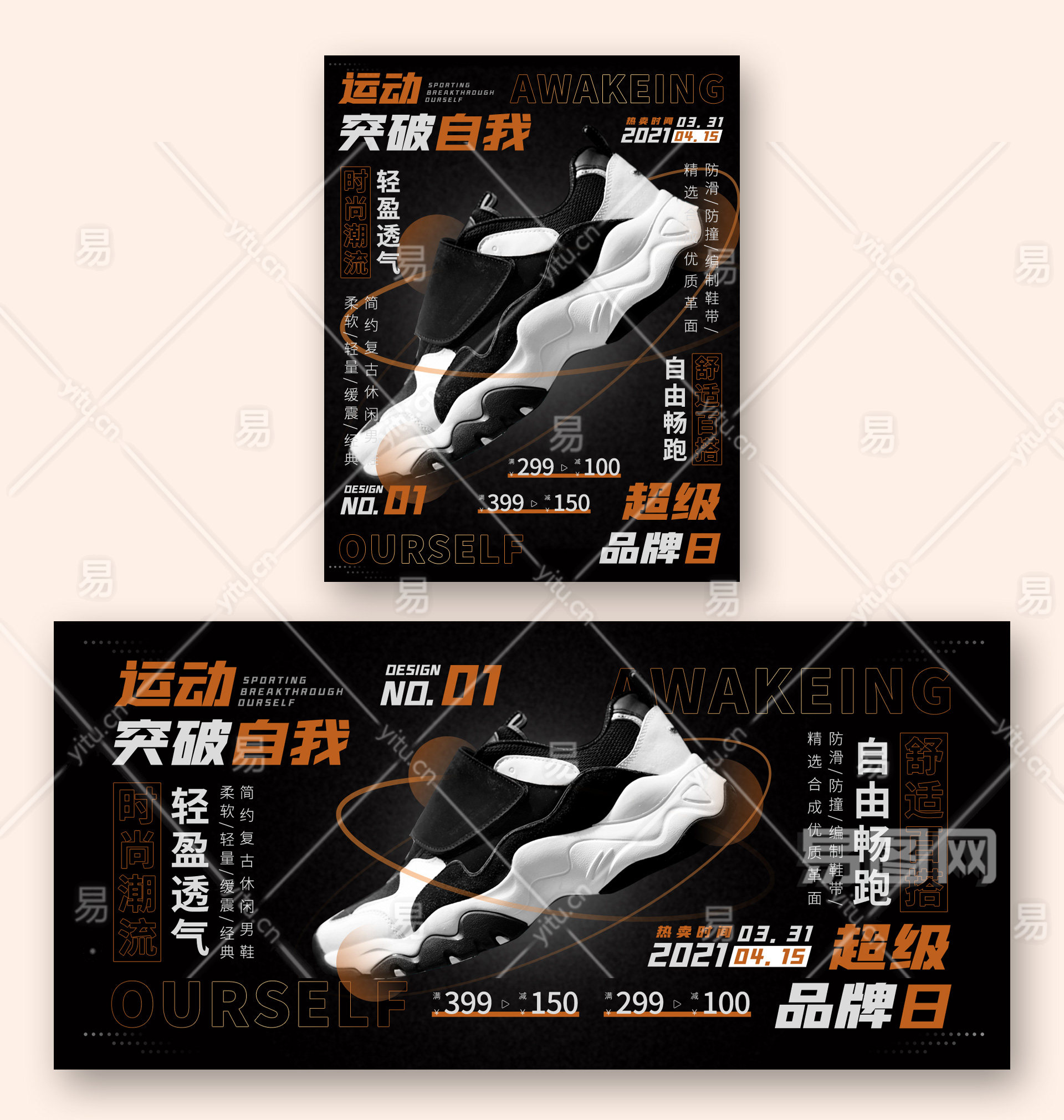 电商环绕型排版超级品牌日运动鞋男鞋海报