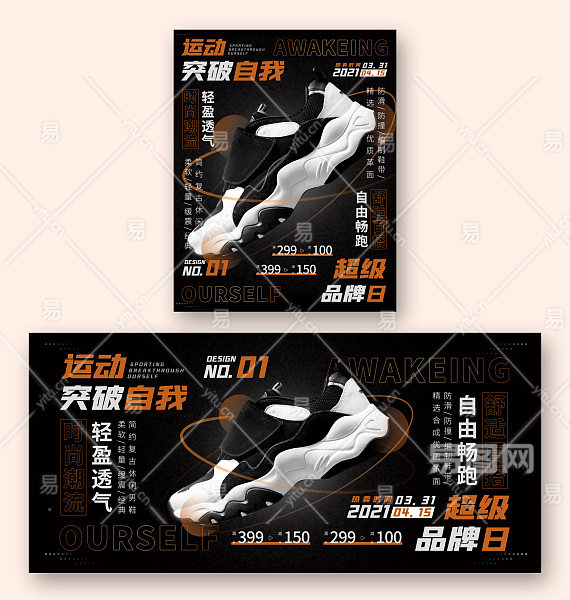 当前的位置:首页 > 广告设计 > 电商海报 > 户外运动 > 电商环绕型排版超级品牌日运动鞋男鞋海报
