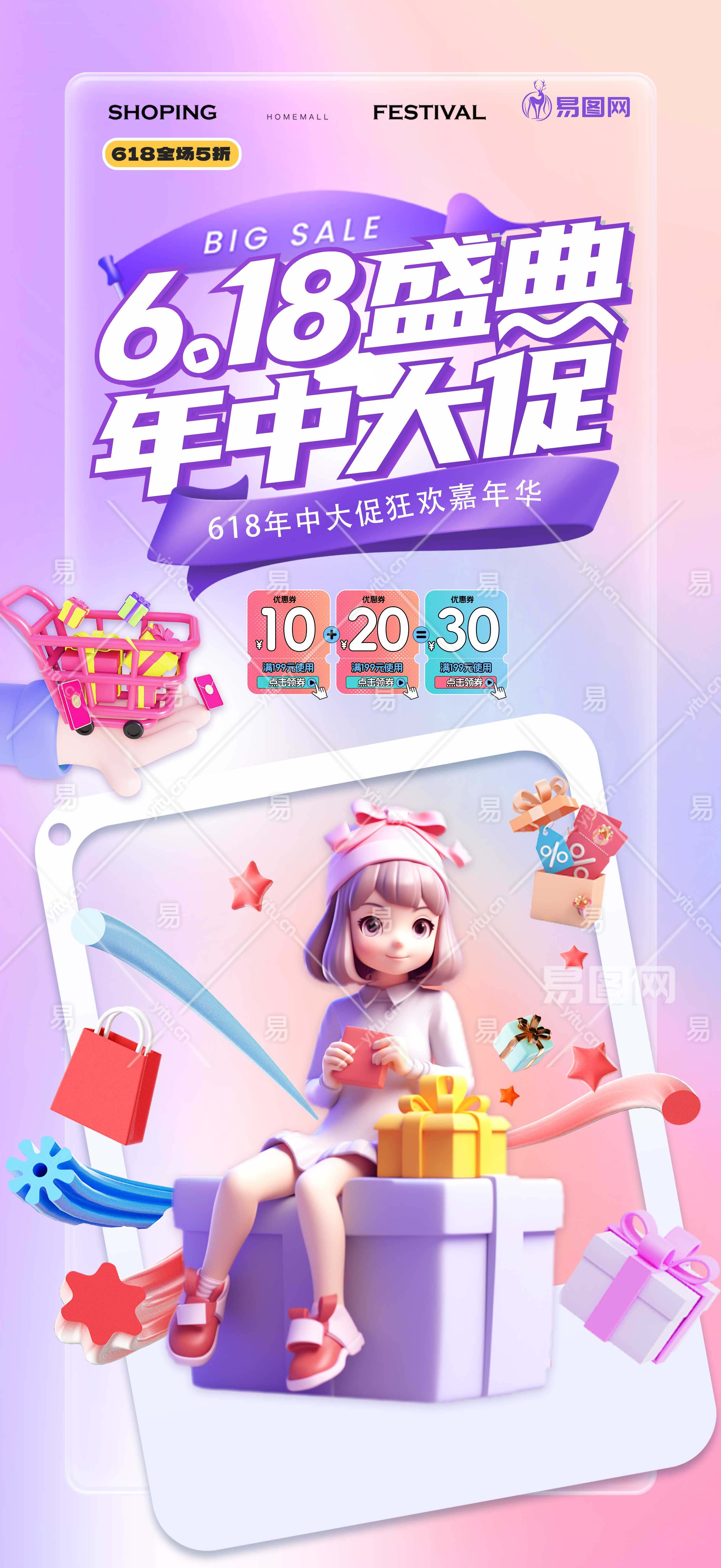 当前的位置:首页 > 广告设计 > 电商海报 > 日用百货 > 618年中大促电商C4D风格活动促销海报