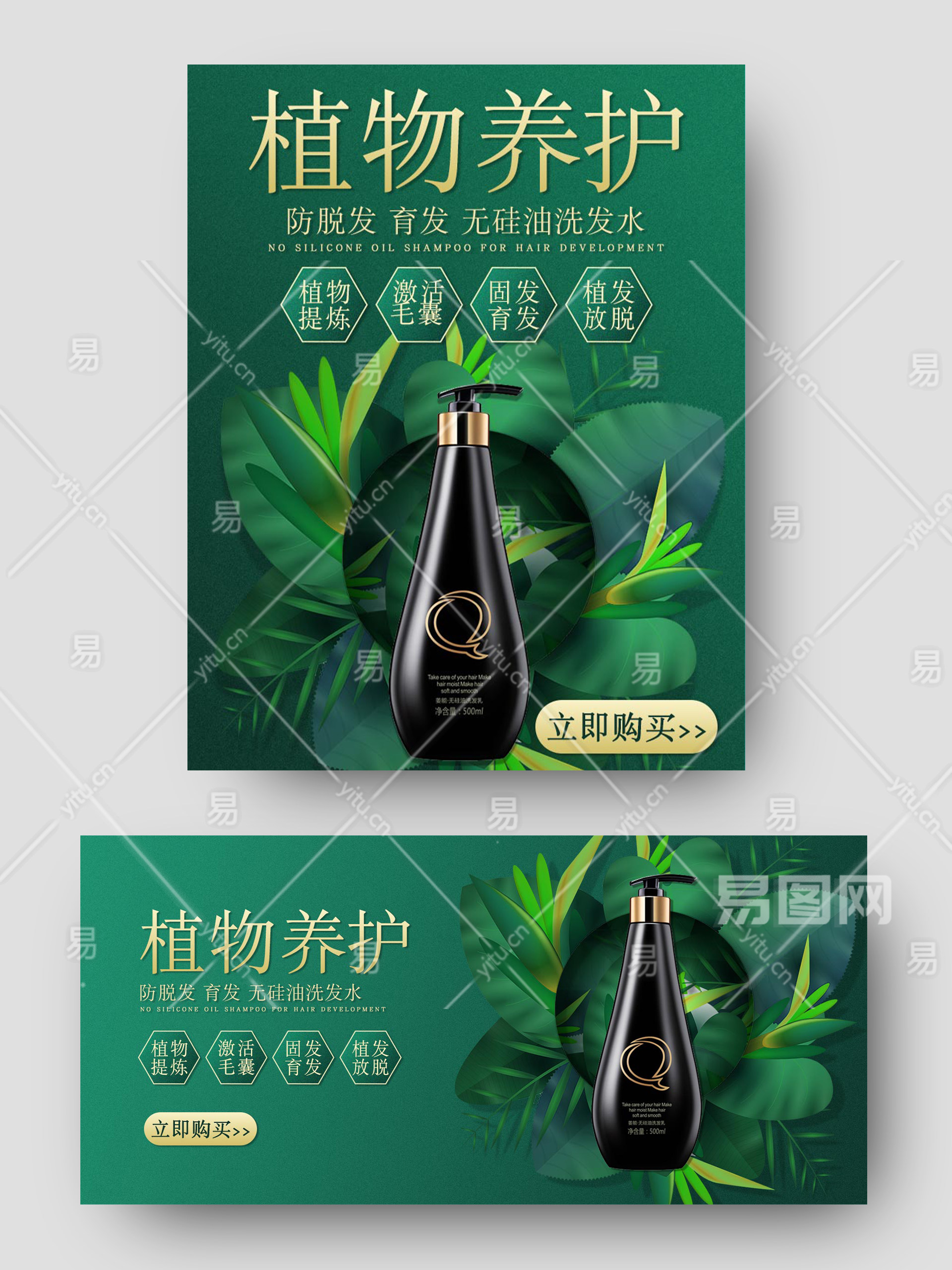 绿色热带植物质感时尚植物养护洗发水洗护用品电商促销海报化妆品