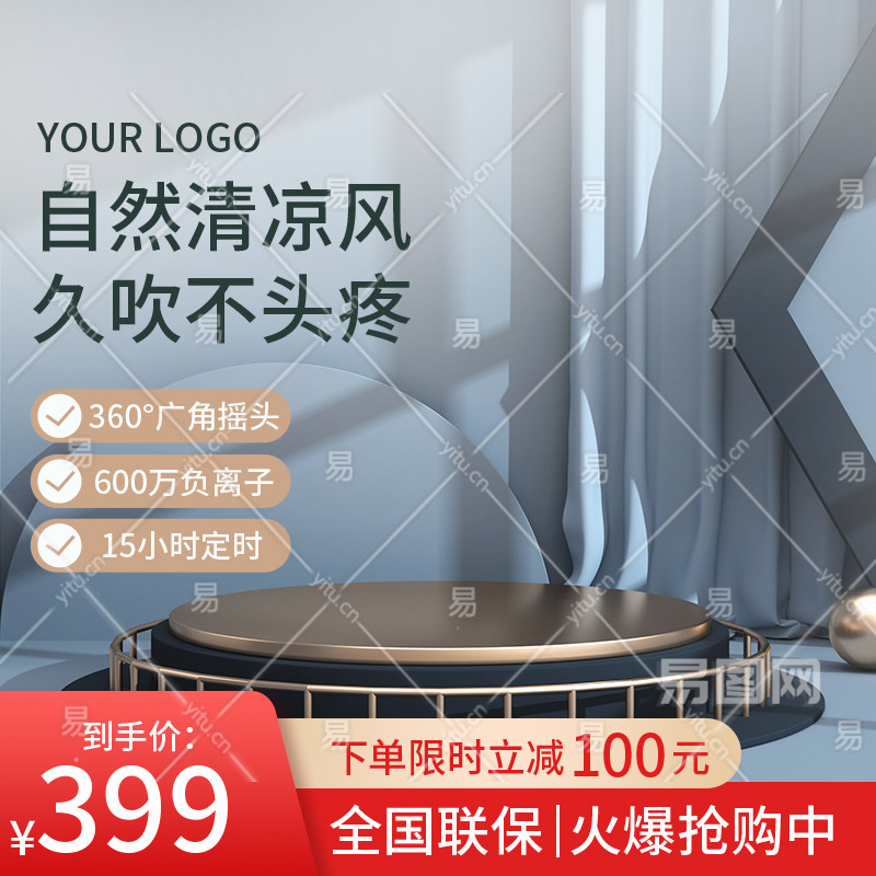 当前的位置:首页 > 广告设计 > 电商海报 > 日用百货 > 夏季电器主图展台蓝色扁平直通车