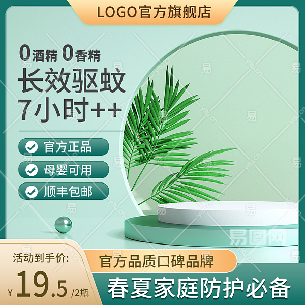 夏季驱蚊产品主图展台绿色扁平直通车