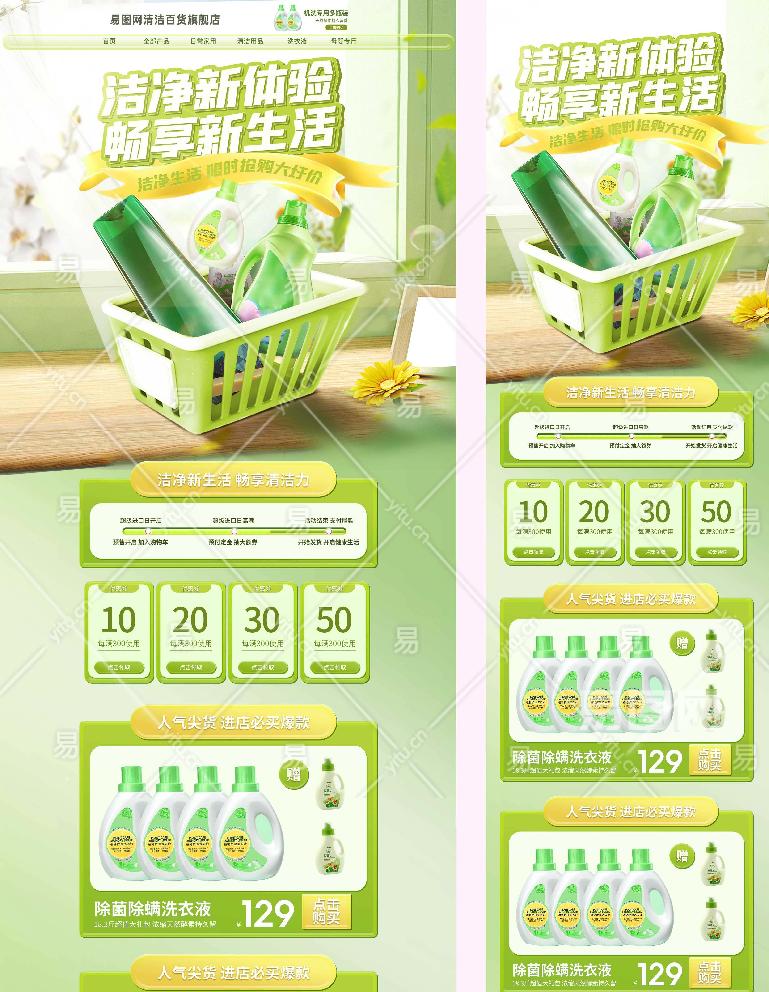 当前的位置:首页 > 广告设计 > 电商海报 > 日用百货 > 绿色清新简约日用百货洗衣粉洗衣液家用实惠装首页