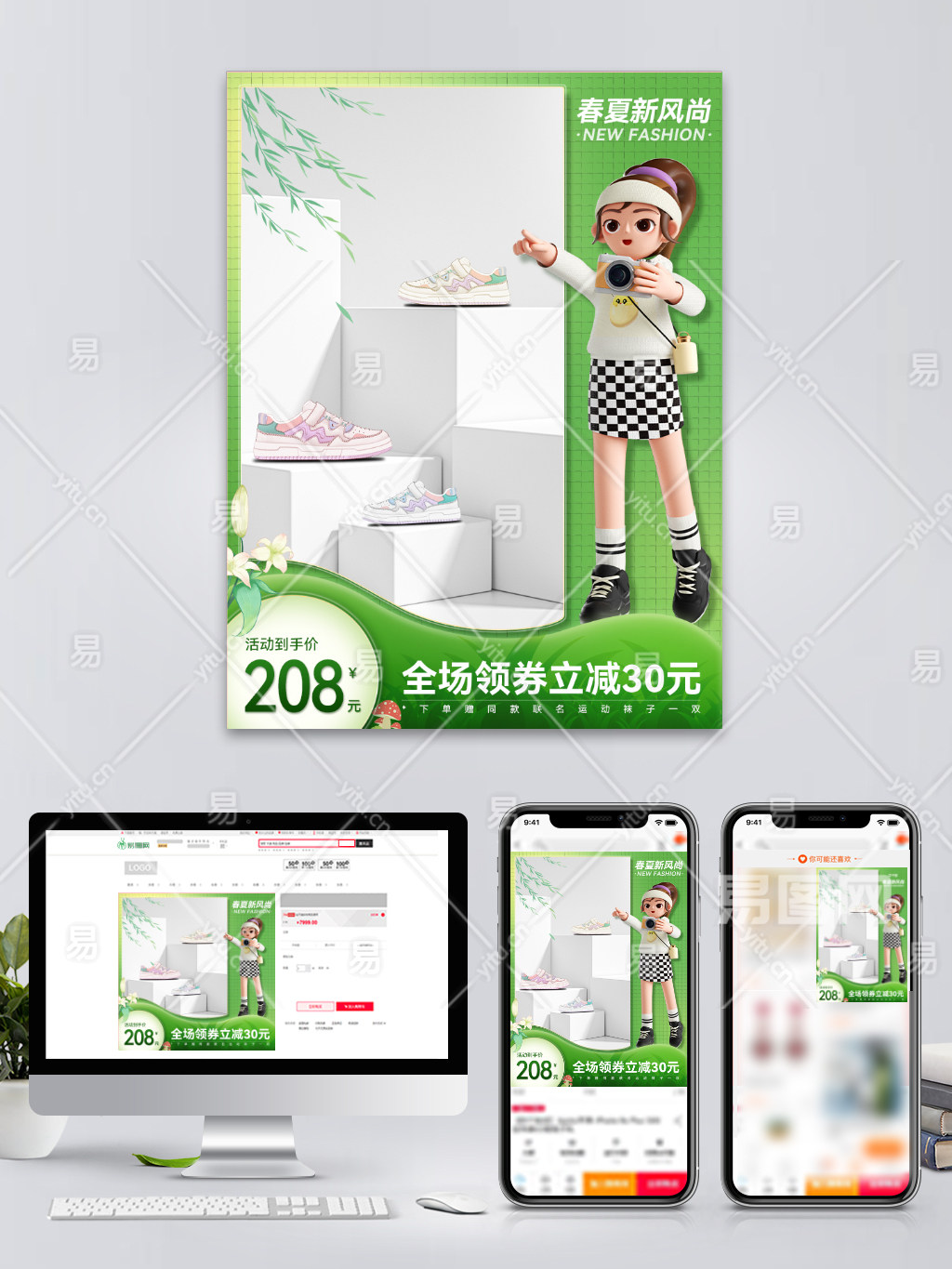 春夏新风尚服饰鞋类主图电商主图绿色主图