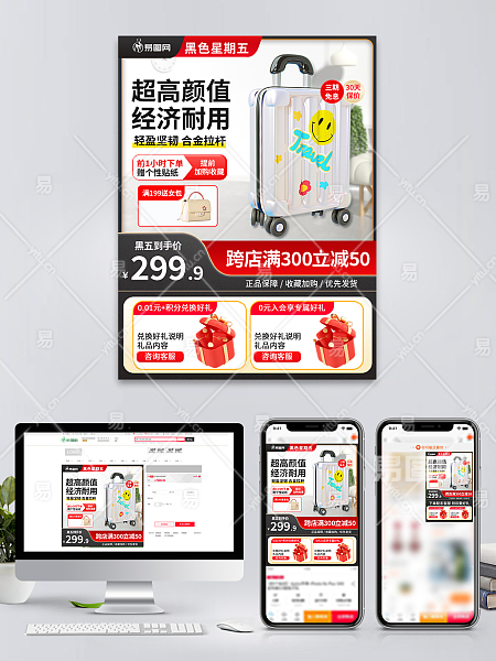 当前的位置:首页 > 广告设计 > 电商海报 > 鞋类箱包 > 黑五箱包行李箱电商主图