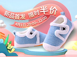 母婴鞋类婴儿鞋童鞋粉色蓝色3D横幅banner
