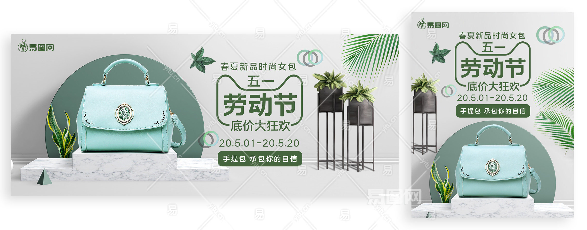 当前的位置:首页 > 广告设计 > 电商海报 > 鞋类箱包 > 五一劳动节箱包绿色清新简约电商Banner